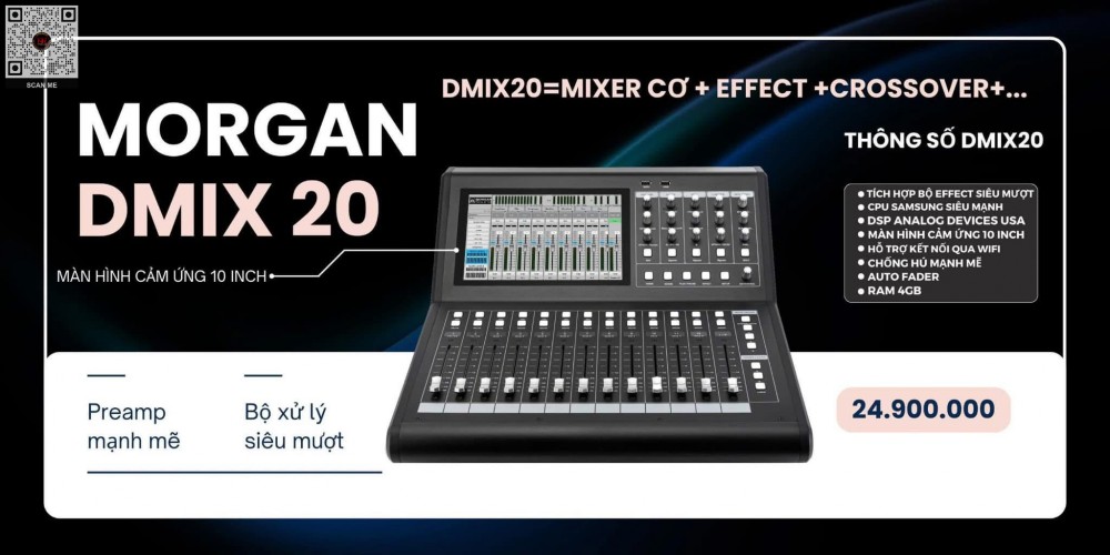 Trong ngành công nghiệp âm thanh hiện đại, việc sử dụng mixer digital đang trở thành xu hướng tất yếu. Và trong số các dòng sản phẩm nổi bật, Mixer Digital MORGAN SOUND DMIX20 được đánh giá là giải pháp hoàn hảo cho mọi hệ thống âm thanh chuyên nghiệp — từ sân khấu, hội trường, phòng thu cho đến sự kiện lớn.